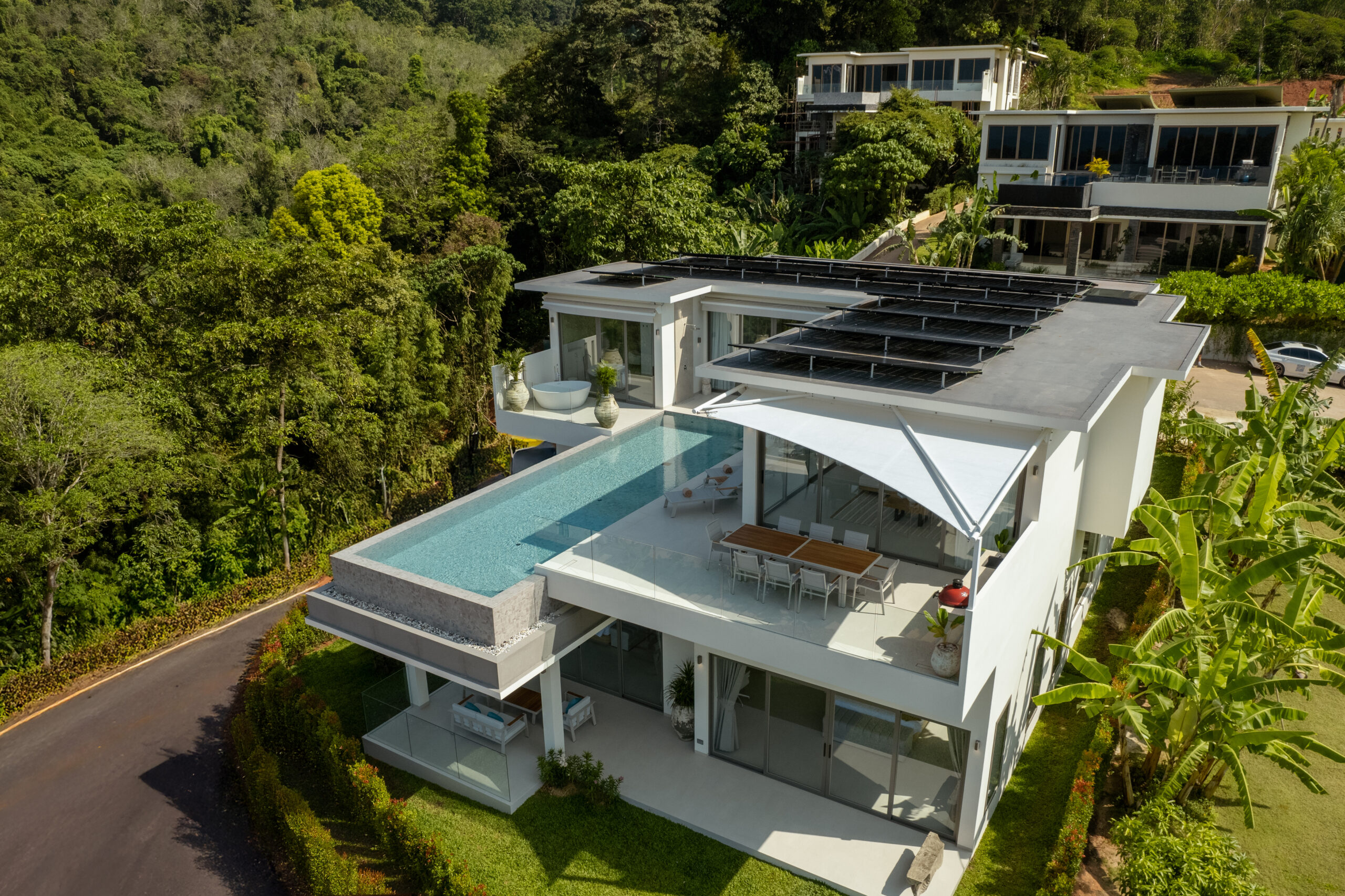 Ogni villa è progettata per massimizzare la vista panoramica sull'oceano e sui tramonti grazie alla posizione elevata (fino a 70m sul livello del mare).