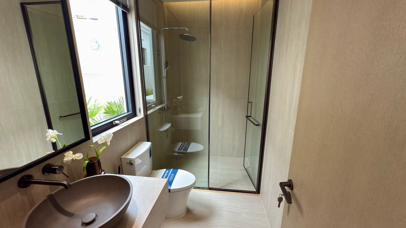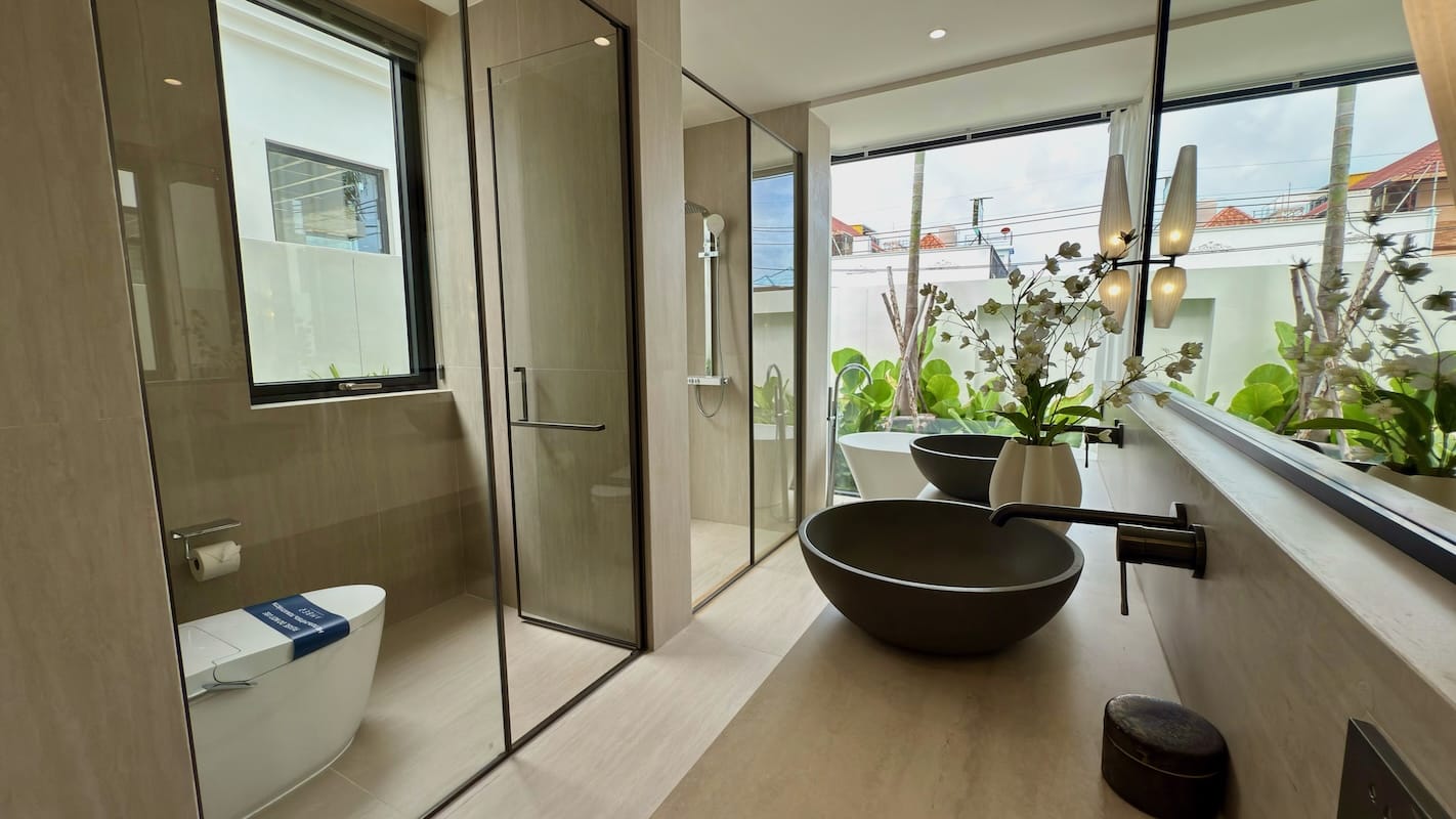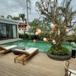 Uscite e troverete una piscina privata e una terrazza solarium, perfette per immergersi nell'atmosfera tropicale. Queste ville sono completamente attrezzate con aria condizionata, internet ad alta velocità e arredi di alta qualità, offrendo tutti i comfort della vita moderna in un ambiente sereno.