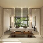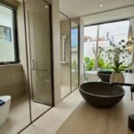 La zona giorno e pranzo a pianta aperta è progettata per catturare la luce naturale attraverso porte in vetro dal pavimento al soffitto. Tuttavia, un alto soffitto a volta esalta il senso dello spazio, mentre la moderna cucina occidentale comprende un'isola e un bar per la colazione —ideale per mattine divertenti o rilassate.