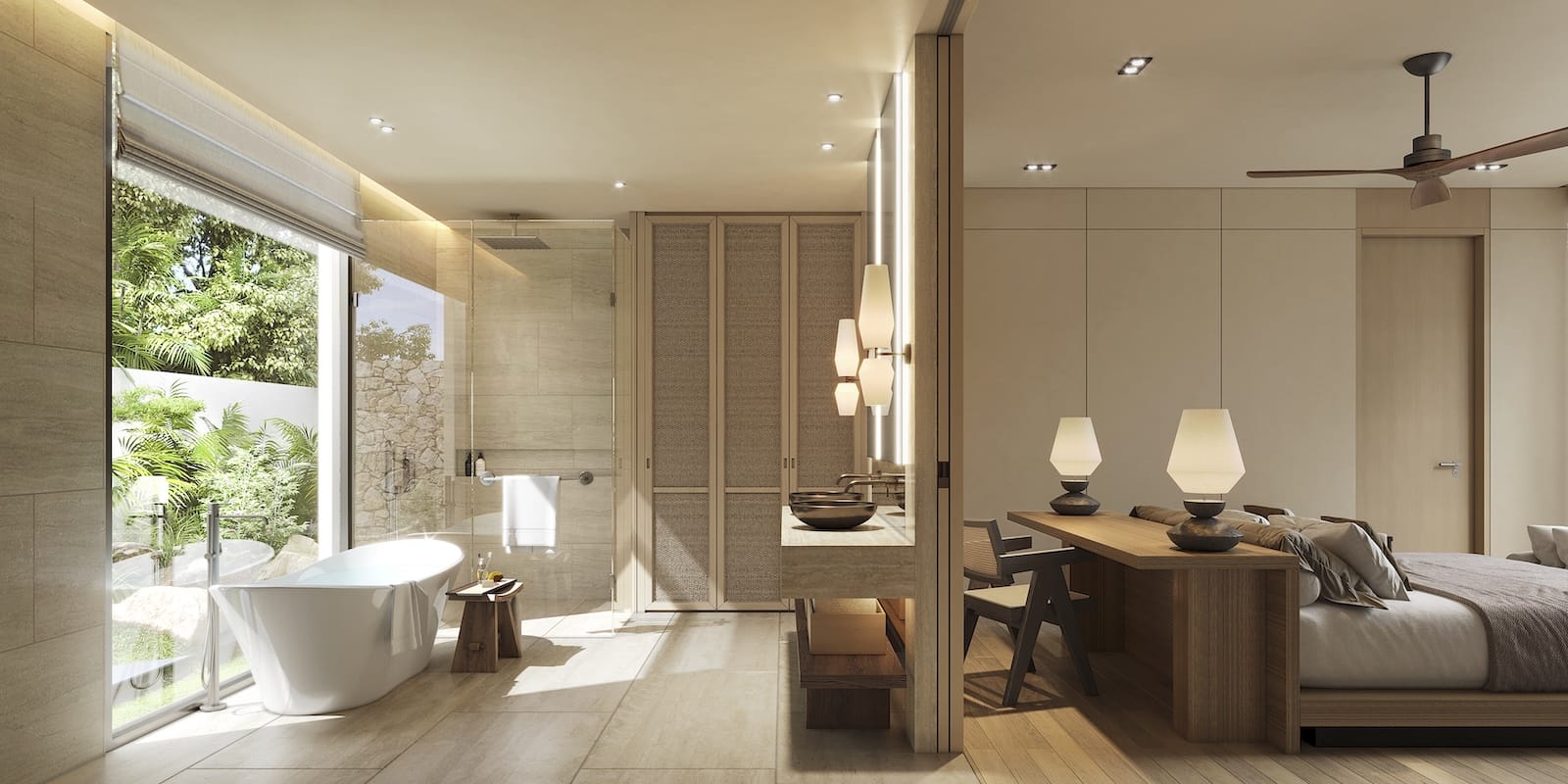 All'interno, le ville dispongono di quattro camere da letto con bagno privato, tra cui una o due spaziose suite padronali. Sono dotati di doppi mobili lavabo, vasche da bagno e finiture eleganti. Le camere degli ospiti sono posizionate lontano dalle principali zone giorno, garantendo privacy e comfort per la famiglia e i visitatori.