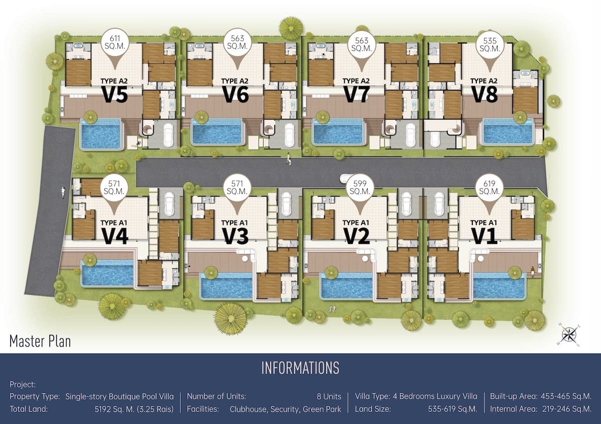 Questa esclusiva comunità recintata è composta da sole otto ville private di lusso con piscina, che fondono l'architettura moderna con il fascino tropicale. Il complesso boutique offre privacy, comfort e viste mozzafiato sul Mare delle Andamane, il tutto vicino a servizi di livello mondiale.