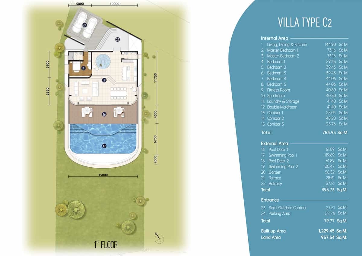 Progettata per offrire una vita senza soluzione di continuità tra interni ed esterni, ogni villa vanta una piscina privata a sfioro e ampie terrazze che si affacciano su panorami mozzafiato sul mare e sulle colline. Grazie alla disposizione architettonica aperta, i residenti possono godersi la fresca brezza marina mentre si rilassano in salotti esterni ombreggiati o prendono il sole sugli spaziosi ponti.
