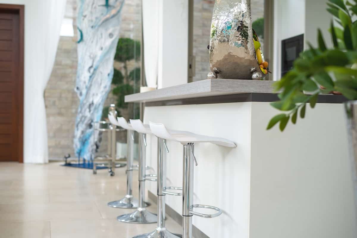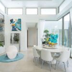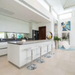 L'imponente superficie interna della villa, pari a 430 metri quadrati, è caratterizzata da un design open space che garantisce un flusso fluido tra spazi abitativi, di ristorazione e ricreativi. La moderna cucina è dotata di elettrodomestici di alta qualità e si affaccia su un ampio soggiorno che si apre sul giardino privato e sulla piscina. Questo terreno di 600 metri quadrati è paesaggistico con flora autoctona, offrendo un ambiente verde lussureggiante che si integra perfettamente con la sofisticata architettura della villa.