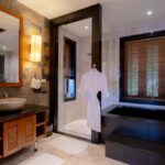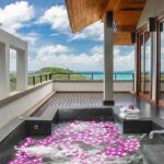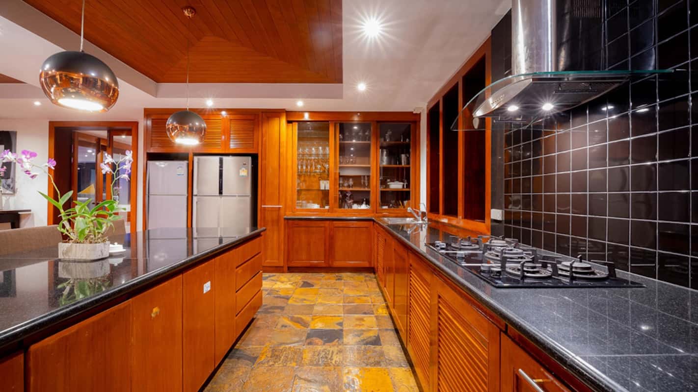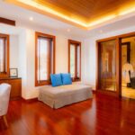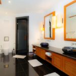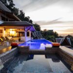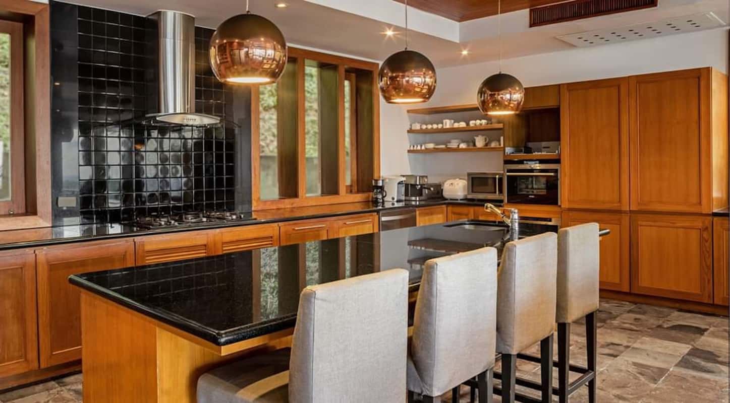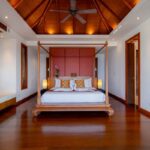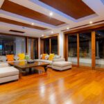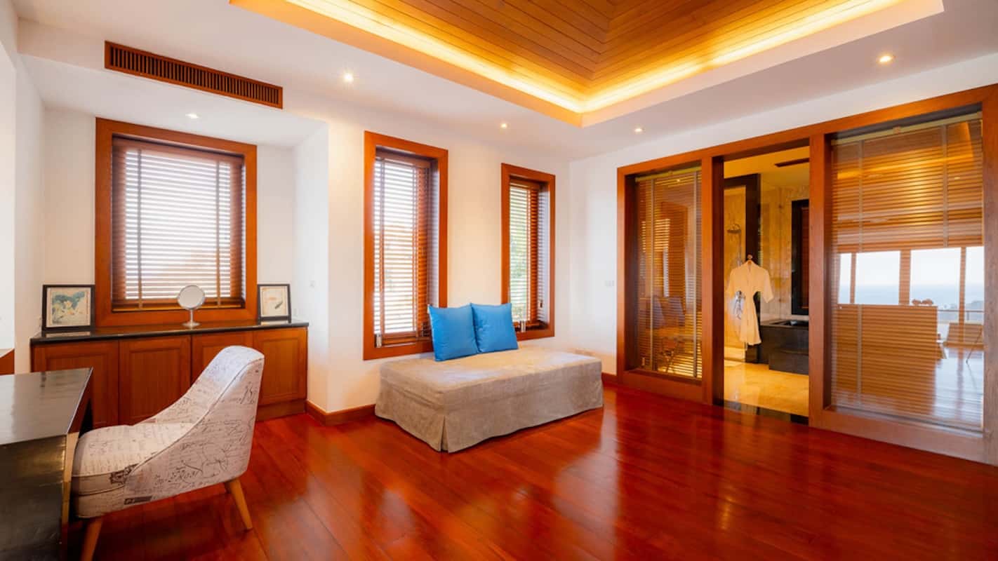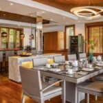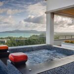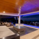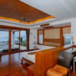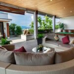 L'elegante ed esclusiva villa di lusso con vista mare in vendita a Surin Phuket è circondata da una lussureggiante vegetazione tropicale e offre un'esperienza di vita serena sia all'interno che all'esterno, con finestre a tutta altezza che inondano gli interni di luce naturale. L'ampia sala intrattenimento, la cucina all'avanguardia con elettrodomestici di alta qualità e il bar per la colazione garantiscono relax e accoglienza in un batter d'occhio. Ogni camera da letto è un rifugio privato con eleganti pavimenti in teak, arredamento contemporaneo e spazi esterni appartati che offrono splendide viste sull'oceano o sulla giungla tropicale.