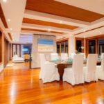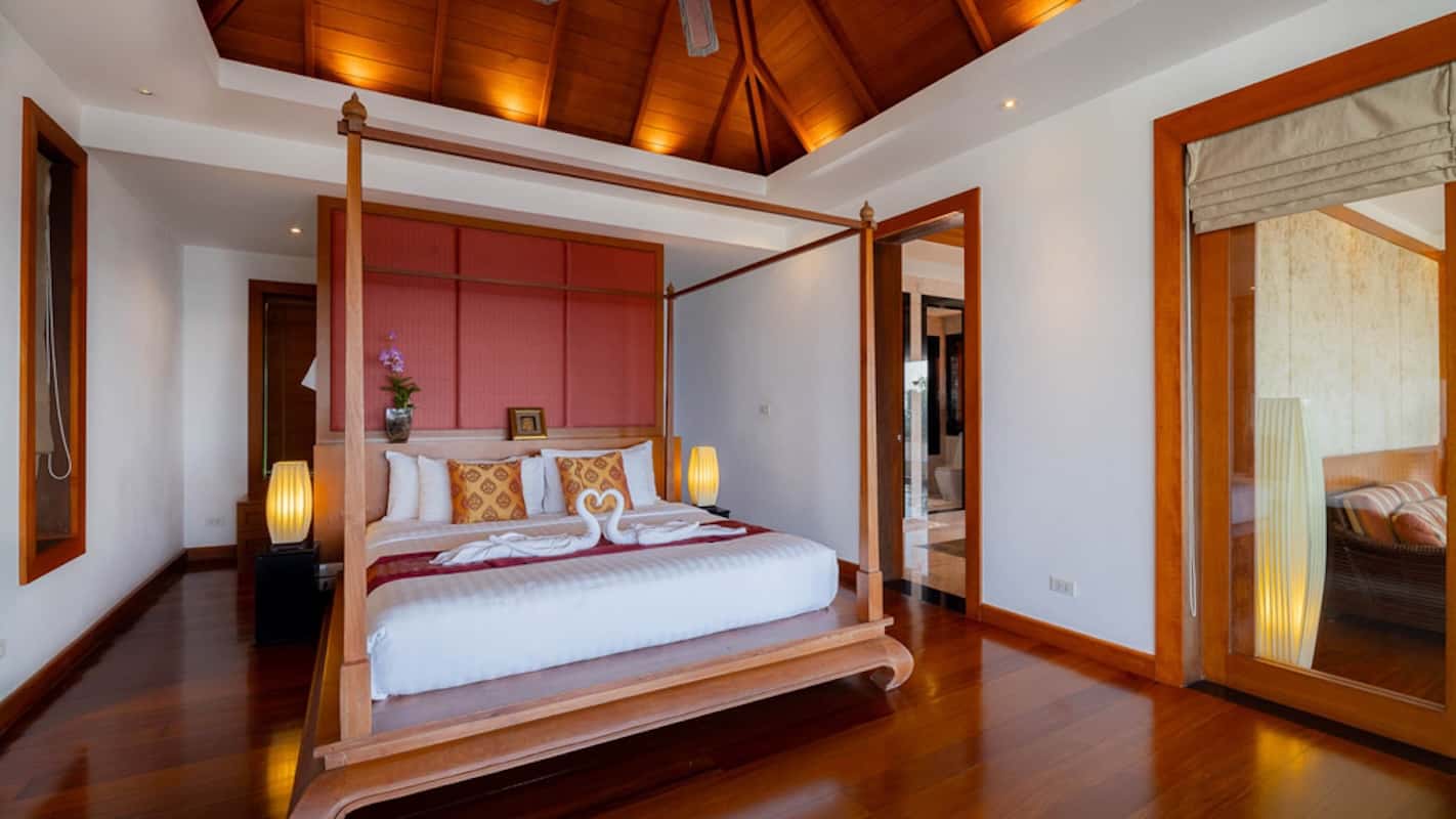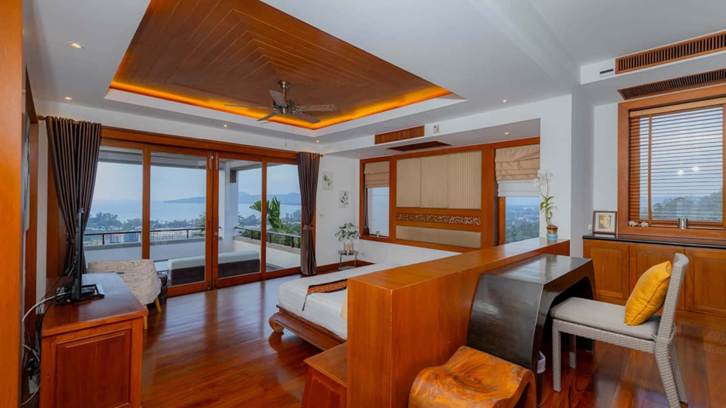 Dotata di cinque spaziose camere da letto e otto bagni elegantemente arredati, questa villa offre un santuario senza rivali in cima alla collina. La piscina a sfioro di 18 metri e la vasca idromassaggio privata offrono viste panoramiche mozzafiato sulla spiaggia di Bang Tao, mentre i tre tradizionali padiglioni thailandesi della villa aggiungono un senso di tradizione senza tempo al suo design moderno.