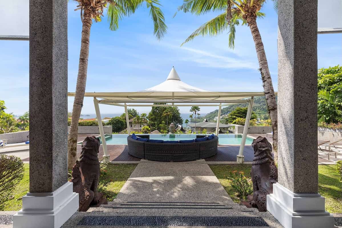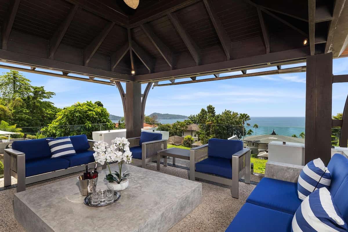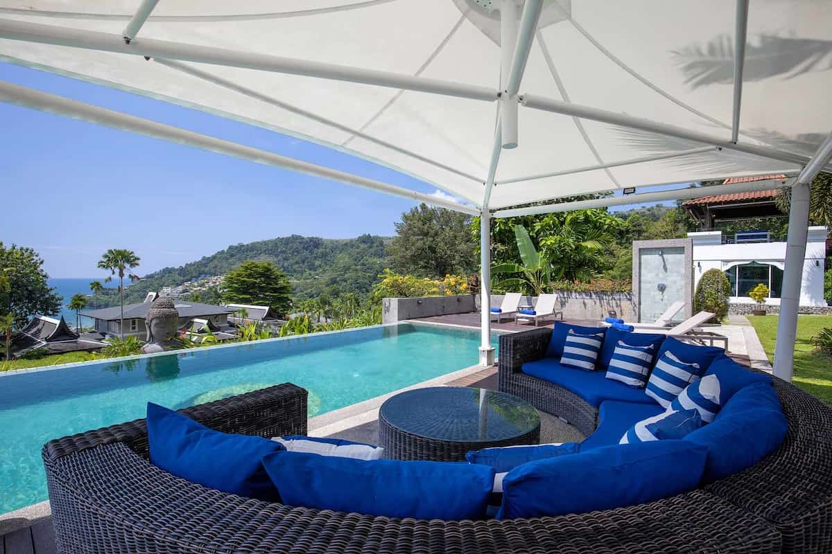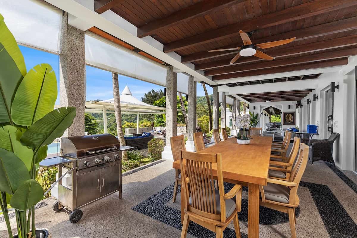 Uscendo, scoprirete un'ampia terrazza coperta che funge da estensione dello spazio abitativo. Dotata di un tavolo da pranzo e di morbidi divani relax, la terrazza è posizionata in modo perfetto per catturare viste mozzafiato sulla piscina a sfioro, sullo scintillante Mare delle Andamane e sulle accattivanti tonalità dei tramonti di Phuket. L'area piscina stessa è un rifugio lussuoso, circondato da lettini e un'area salotto ombreggiata che invita a rilassarsi con stile.