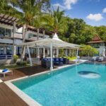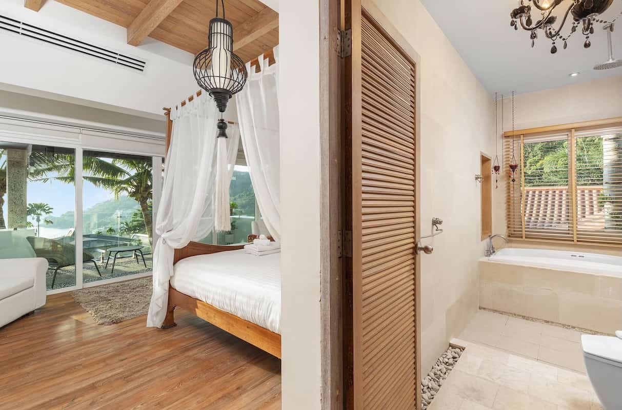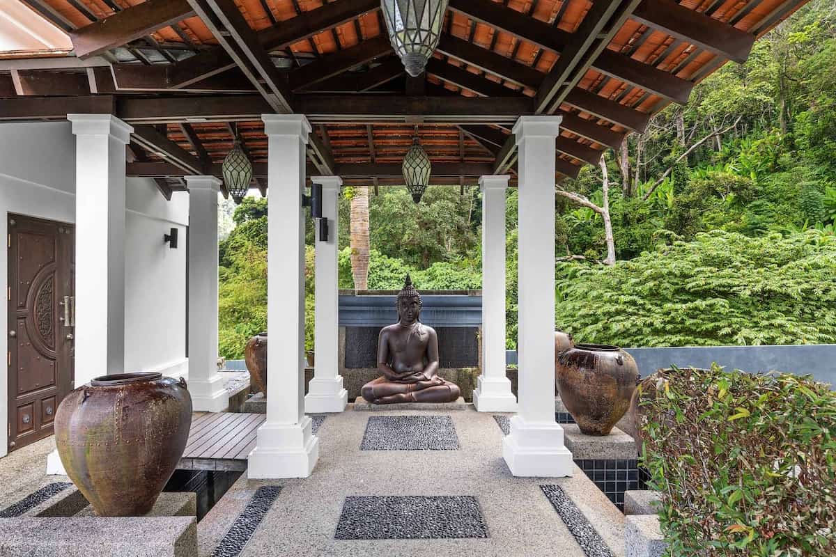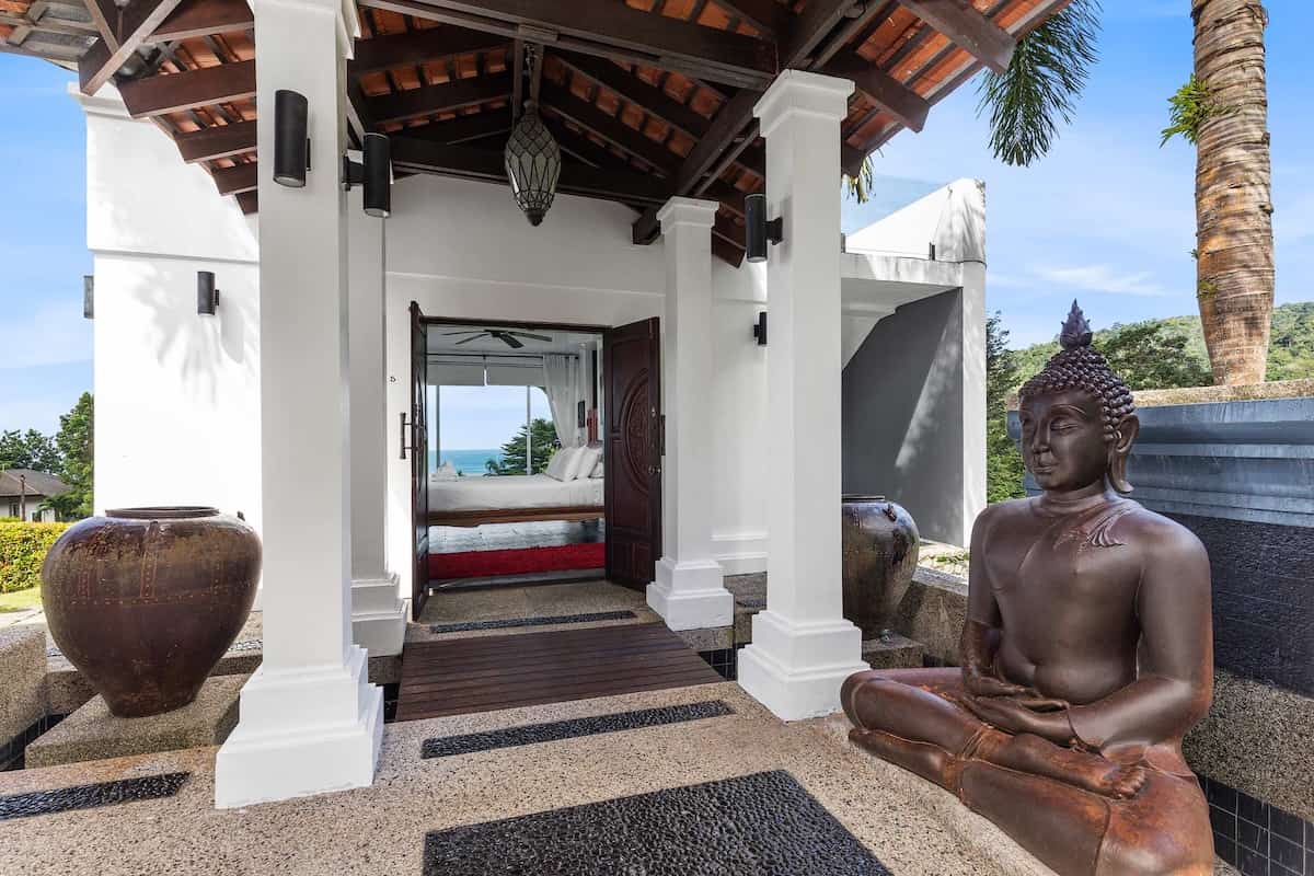 Uscendo, scoprirete un'ampia terrazza coperta che funge da estensione dello spazio abitativo. Dotata di un tavolo da pranzo e di morbidi divani relax, la terrazza è posizionata in modo perfetto per catturare viste mozzafiato sulla piscina a sfioro, sullo scintillante Mare delle Andamane e sulle accattivanti tonalità dei tramonti di Phuket. L'area piscina stessa è un rifugio lussuoso, circondato da lettini e un'area salotto ombreggiata che invita a rilassarsi con stile.