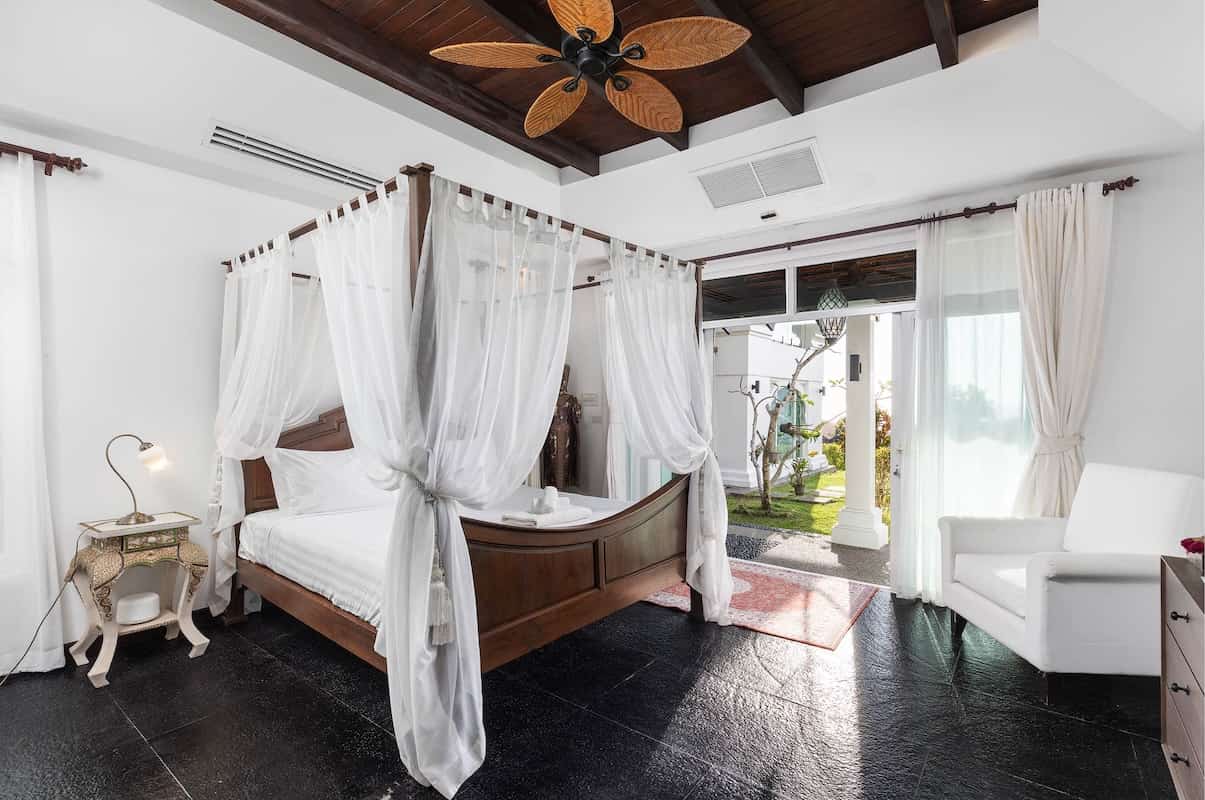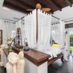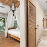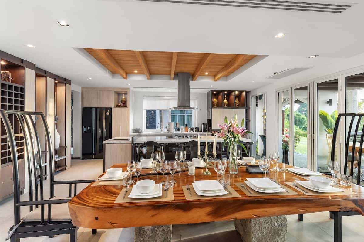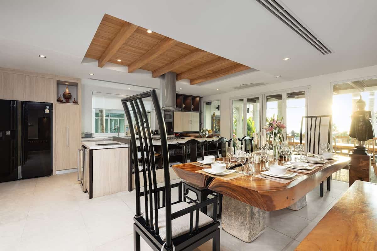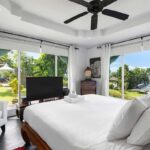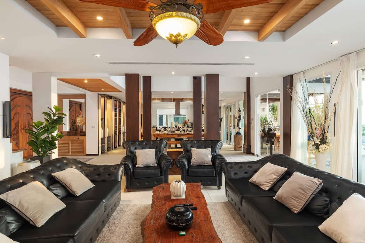 Costruita nel 2010 e meticolosamente ristrutturata nel 2024, Villa Thai Sawan coniuga con naturalezza l'intramontabile architettura thailandese-balinese con la moderna raffinatezza. La proprietà si estende su 2.400 metri quadrati di terreno pianeggiante e collinare, offrendo 850 metri quadrati di spazio abitativo interno attentamente distribuito su otto edifici interconnessi. La sua disposizione prevalentemente a un piano crea un flusso continuo tra gli spazi, mentre tre delle camere da letto principali sono elevate al secondo piano per massimizzare la privacy e le viste panoramiche.