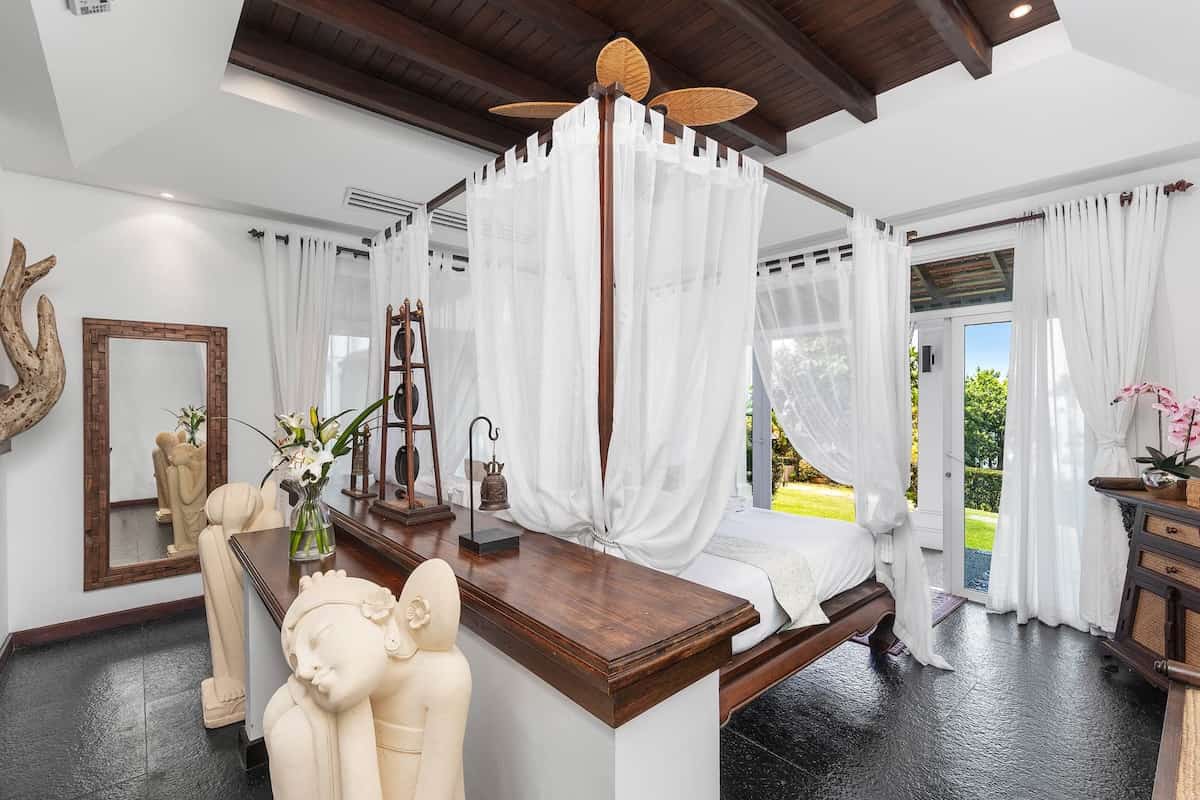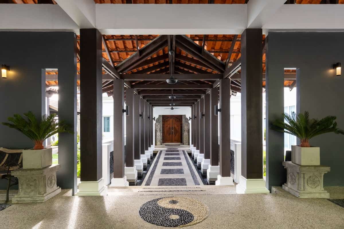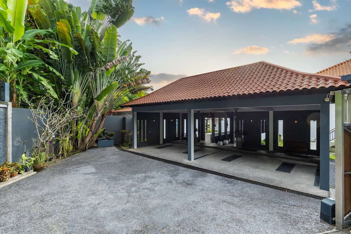 Avvicinandosi alla villa, si apre un grande cancello elettrico che rivela un ampio parcheggio in grado di ospitare fino a quattro auto, oltre a motociclette e biciclette. Da lì, una tranquilla passerella coperta di 15 metri, incorniciata da scintillanti fontane d'acqua, vi condurrà a un ingresso balinese realizzato a mano. Questo grandioso ingresso pone le basi per l'eleganza e la bellezza che attendono all'interno.