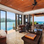 L'esclusiva disposizione a forma di U della proprietà si estende su due livelli, offrendo privacy e massimizzando le splendide viste sull'oceano. Il piano superiore ospita l'elegante camera da letto principale, che gode di ampie viste sul Mare delle Andamane. Adiacenti alla master suite si trovano le zone pranzo e soggiorno, che si aprono su ponti esterni progettati per la vita all'aperto. Due ulteriori camere per gli ospiti sono posizionate sul lato opposto della villa, garantendo privacy e comfort per la famiglia o i visitatori.