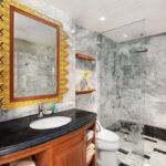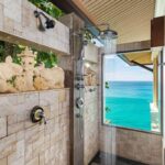 Il piano inferiore continua a stupire con una sala di intrattenimento versatile, perfetta per ospitare gli ospiti o per rilassarsi dopo una giornata in spiaggia. Un ufficio dedicato e una biblioteca offrono uno spazio tranquillo per lavorare o studiare, mentre un grazioso studio che può essere utilizzato anche come camera da letto aggiuntiva dispone di un bagno privato in marmo. Nelle vicinanze, la sala lounge all'aperto offre un rifugio ombreggiato accanto a una cascata di pietra, con una passerella privata che si snoda attraverso giardini terrazzati fino al mare.