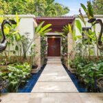 Avvicinandosi alla villa, l'ingresso affascina immediatamente con le sue travi in legno di teak che ombreggiano un lussureggiante giardino verticale di orchidee. Gradini di marmo conducono attraverso un tranquillo stagno adornato con piante acquatiche, completato da una dolce cascata. Questo invitante ingresso dà il tono all'atmosfera lussuosa ma tranquilla che si trova in tutta la casa.