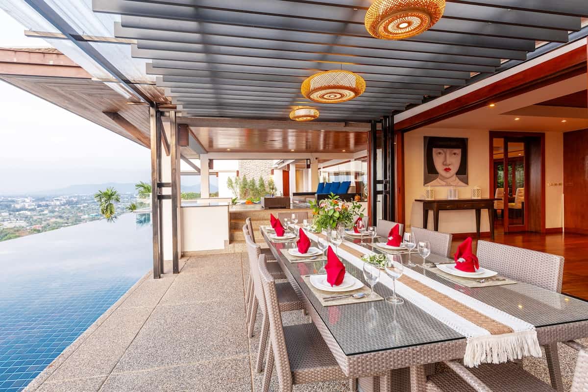 Arroccata in alto sopra Amanpuri e Surin Beach, questa splendida villa offre uno degli scenari più spettacolari di Phuket. Inoltre, la sua posizione privilegiata garantisce sia privacy che comodità. Inoltre, la struttura è dotata di un doppio ascensore che collega tutti i piani, migliorando l'accessibilità per tutti i residenti e gli ospiti.