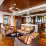 Una magnifica piscina a sfioro di 18 metri si estende sul livello principale, fondendosi perfettamente con l'orizzonte. All'interno, un'ampia cucina gourmet si apre su una spaziosa sala familiare e su un'elegante zona pranzo. Inoltre, una lounge formale offre uno spazio raffinato per intrattenere gli ospiti. All'esterno, tre distinte zone giorno e una vasca idromassaggio integrata creano il rifugio perfetto.