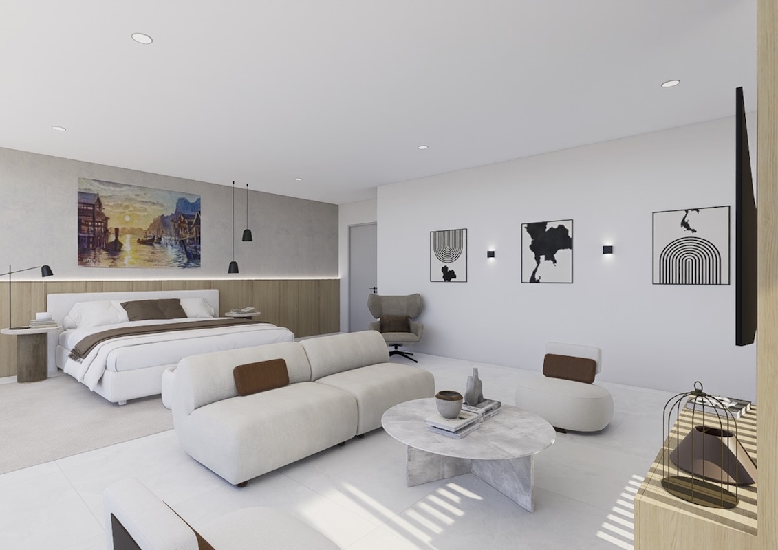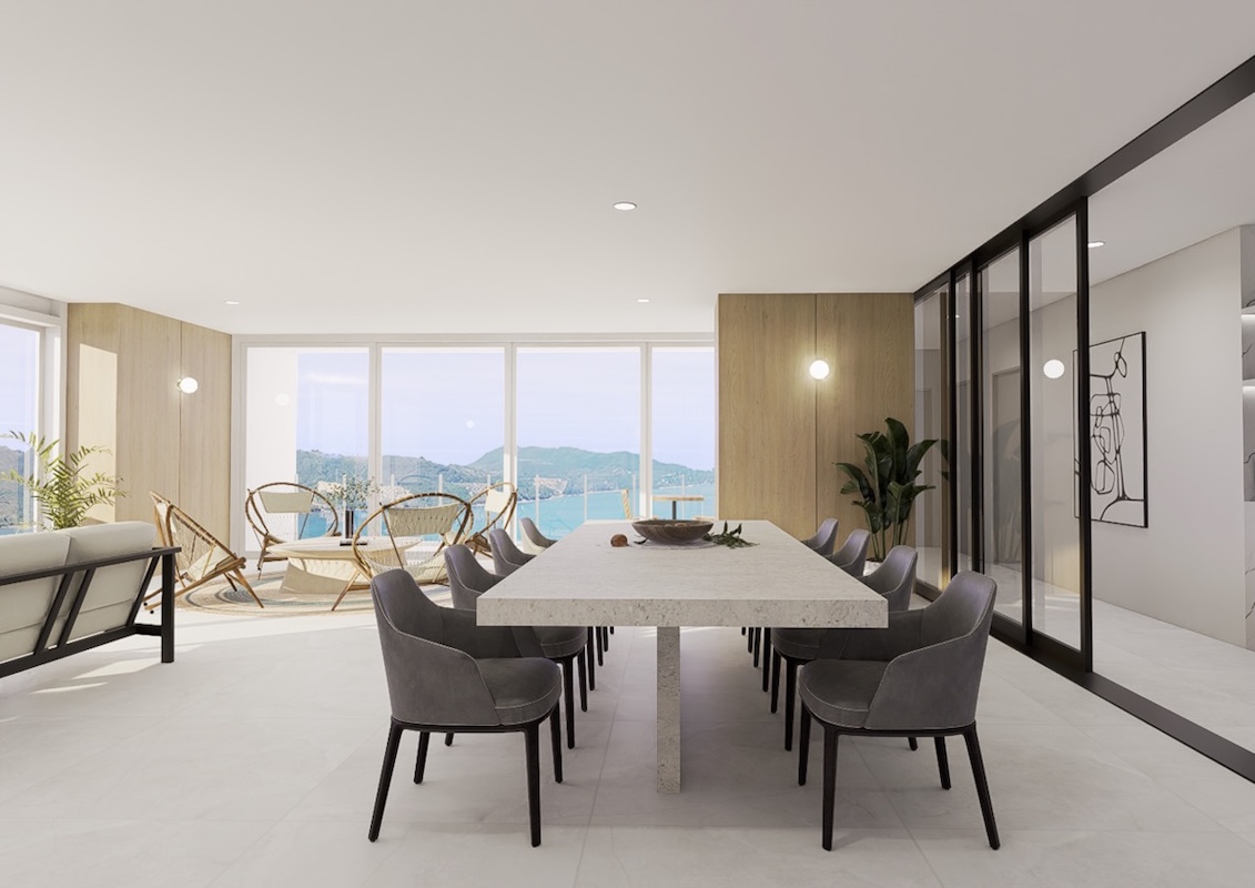 Design di lusso: Gli interni sono realizzati con un'estetica elegante e moderna che si integra perfettamente con la bellezza naturale visibile da ogni stanza.