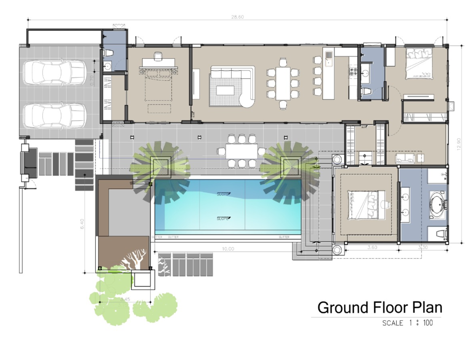 La villa dispone di 4 camere da letto e 4 bagni, sviluppati su un unico livello, con una superficie costruita che varia da 193 a 380 mq. Gli spazi interni, pari a 230,10 mq, ospitano una grande zona living e dining con vista piscina dalla maggior parte degli ambienti, ideale per famiglie, gruppi di amici o per affitti turistici di alto livello. La presenza di una sala multifunzionale aggiunge valore alla proprietà, offrendo uno spazio versatile per il relax, pranzi all’aperto o momenti conviviali.